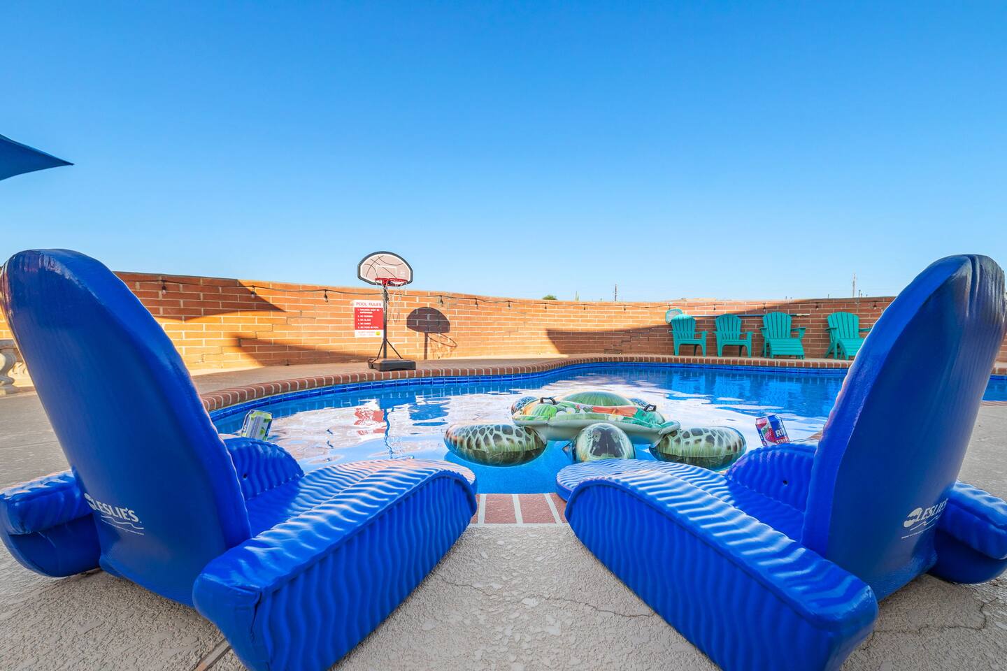 Families with children can rest easy knowing that we've taken safety precautions. Children must be supervised by an adult in the pool area, and an additional child lock on the door leading to the pool area adds an extra layer of protection. Please note that there is no locked gate around the pool.